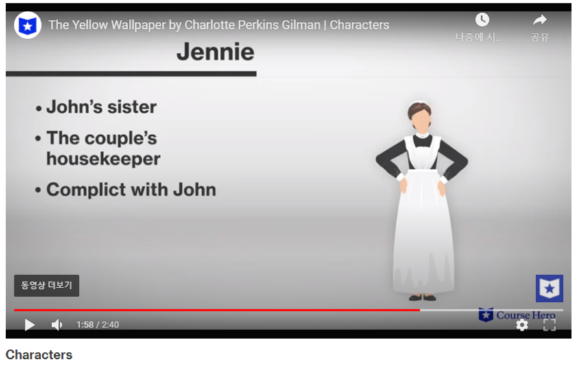 - 남편 존과 '제니'가 화자의 영향을 받아 행동이 변하는 것이 인상적이다.